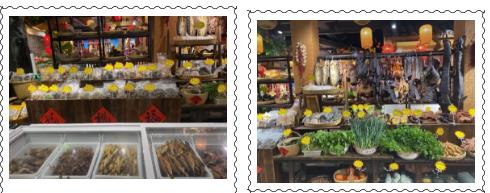 干貨、肉禽、糧油米面……衡州菜市鄉(xiāng)土食材貨架上各種土特產(chǎn)品琳瑯滿目。既有衡陽縣長樂荷折皮、西渡湖之酒、衡南縣茅市燒餅、湘西土臘肉、衡山黃貢椒、邵陽豬血丸子、岳陽樟樹港辣椒等具有地理標(biāo)志,獨(dú)具地方風(fēng)味的土特產(chǎn),也有農(nóng)戶種植的農(nóng)產(chǎn)品,及山里人家采來的野山菌、煙筍片等原生態(tài)山貨。